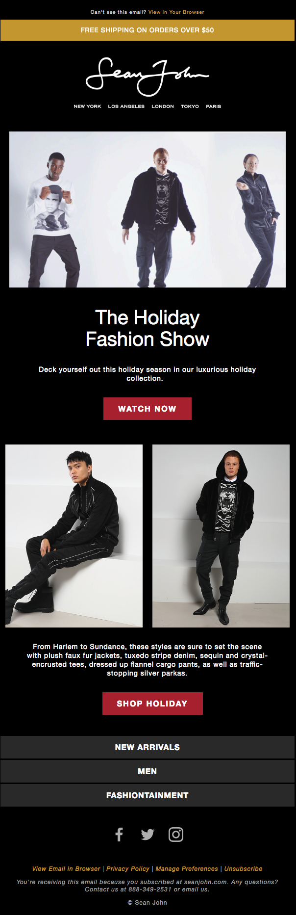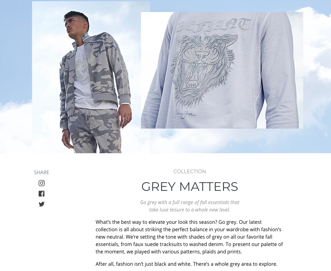 With the launch of Sean John’s DTC platform, I played an integral role in redefining the brand voice for a new generation. In addition to leading original content creation, I also worked on producing copy for landing pages, emails, social media, product descriptions, and more.